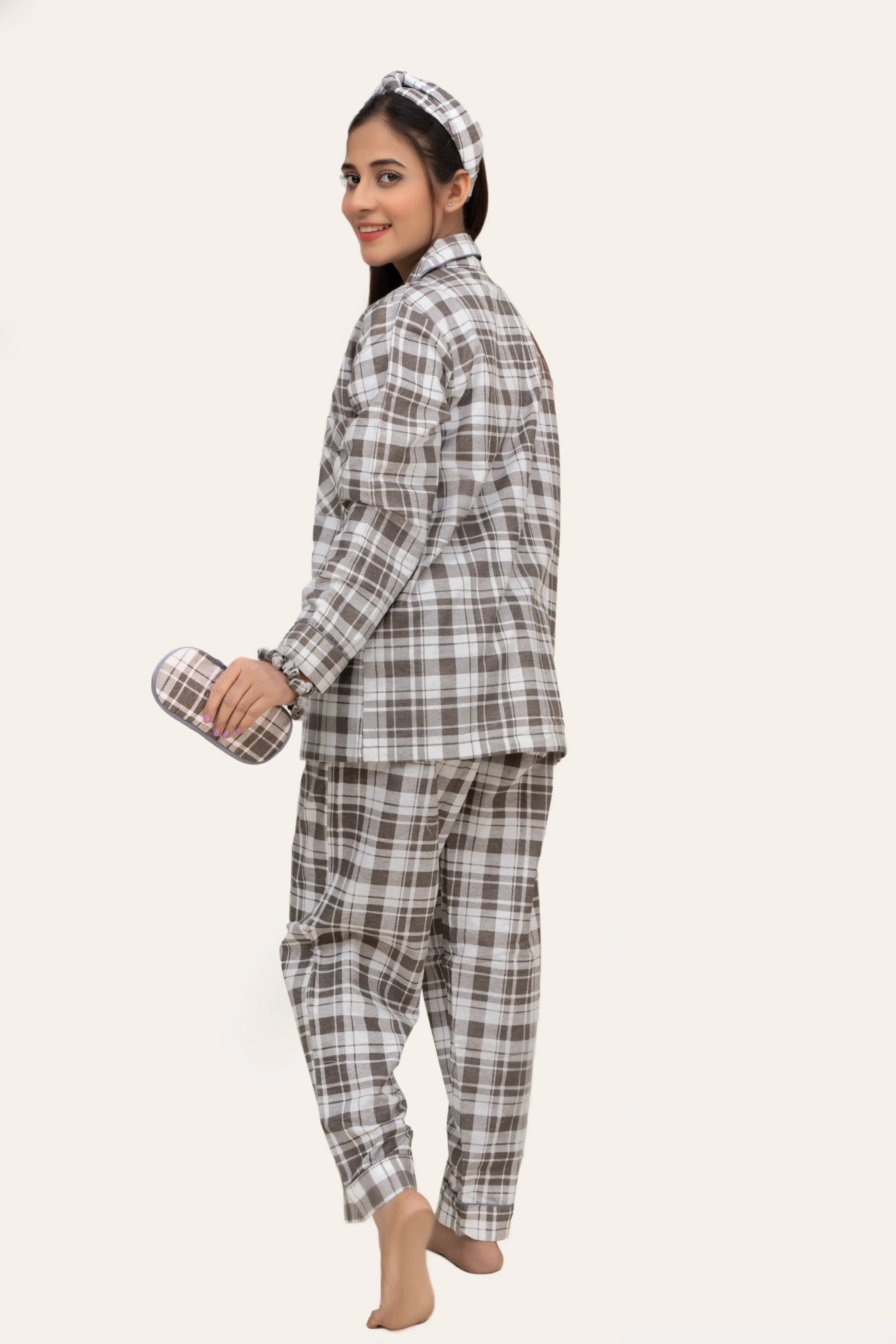 Wearing warm Women Light Weight 100% Cotton Both Side Brush Super Soft Flannel Pajama SetÂ