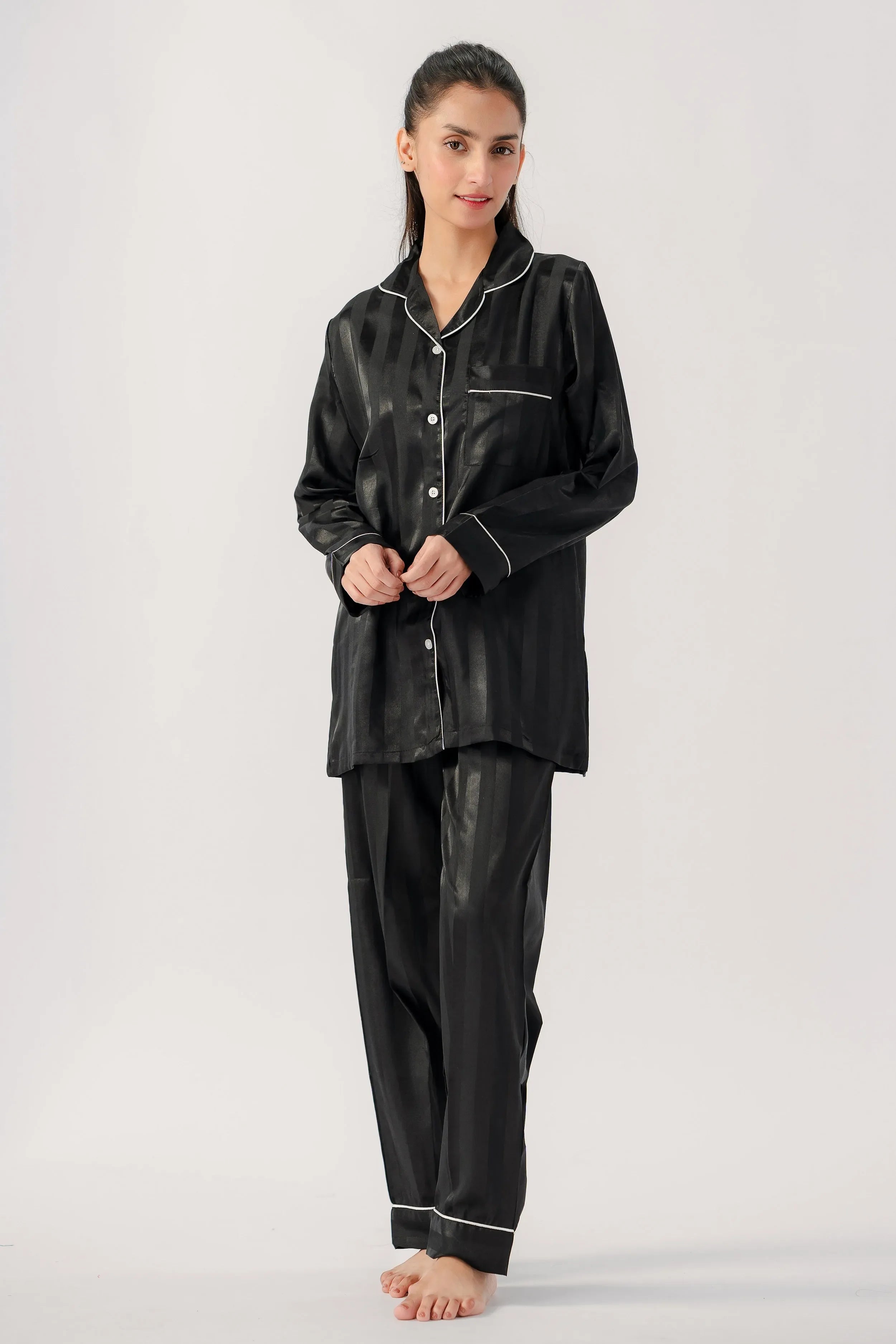 Studio by Arj Women's Vintage Shadow Stripe Black Nightwear Pajama Set – Soft & Comfortable Two-Piece Sleepwear for Relaxed Nights