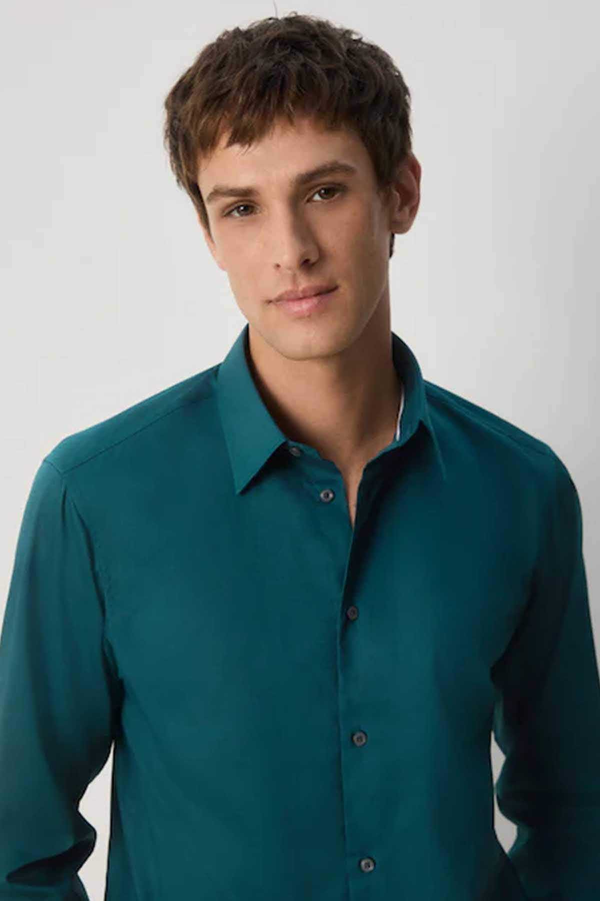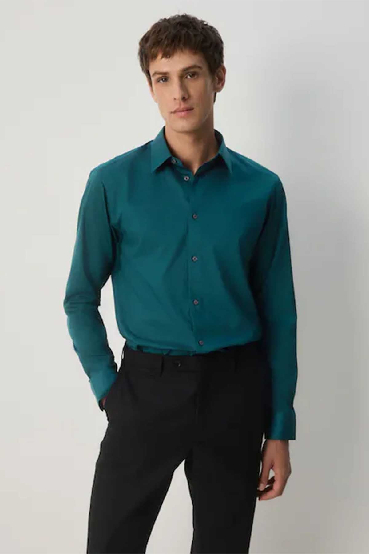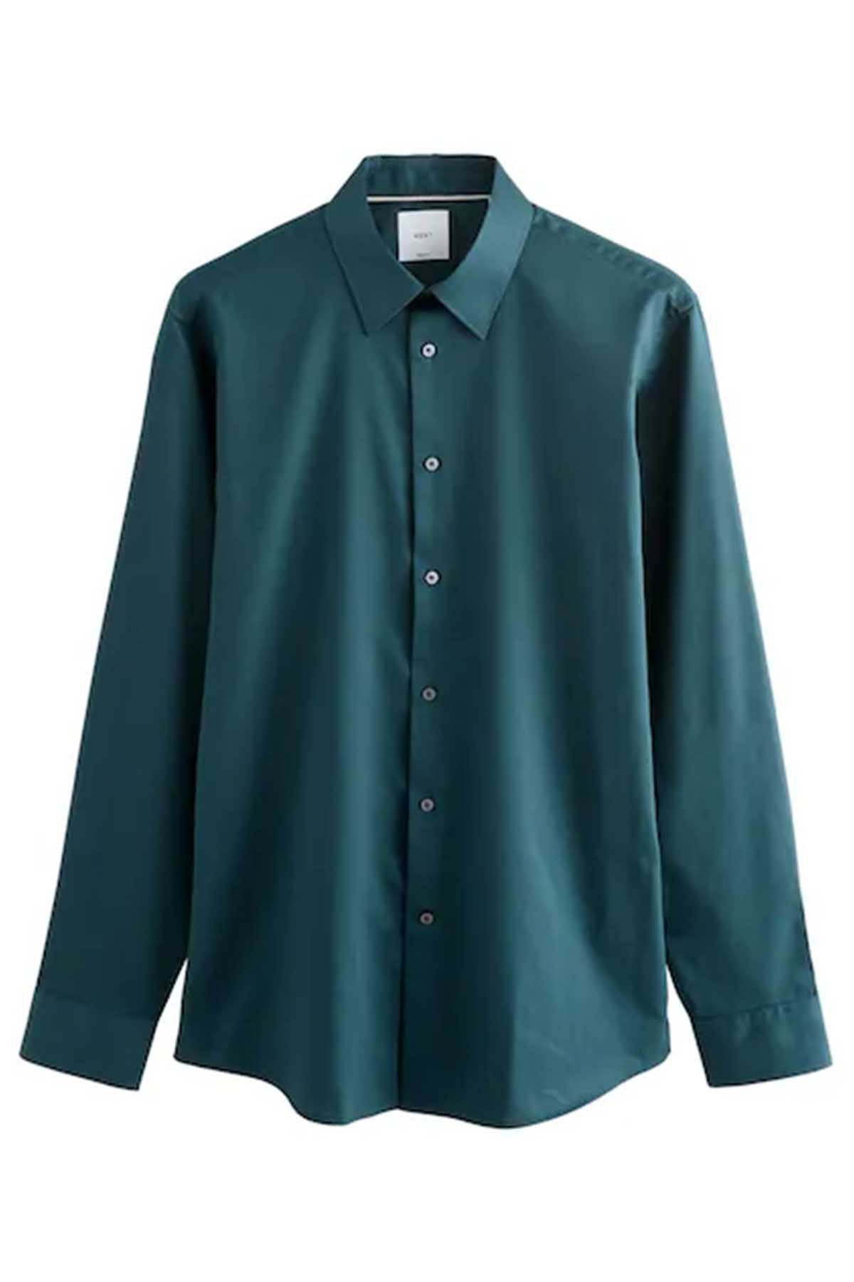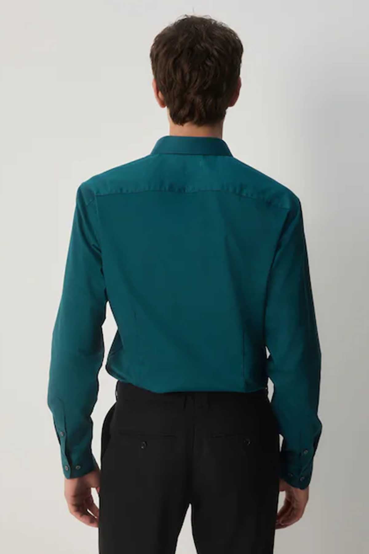 Teal Blue Slim Fit Easy Care Textured Single Cuff Smart Shirt