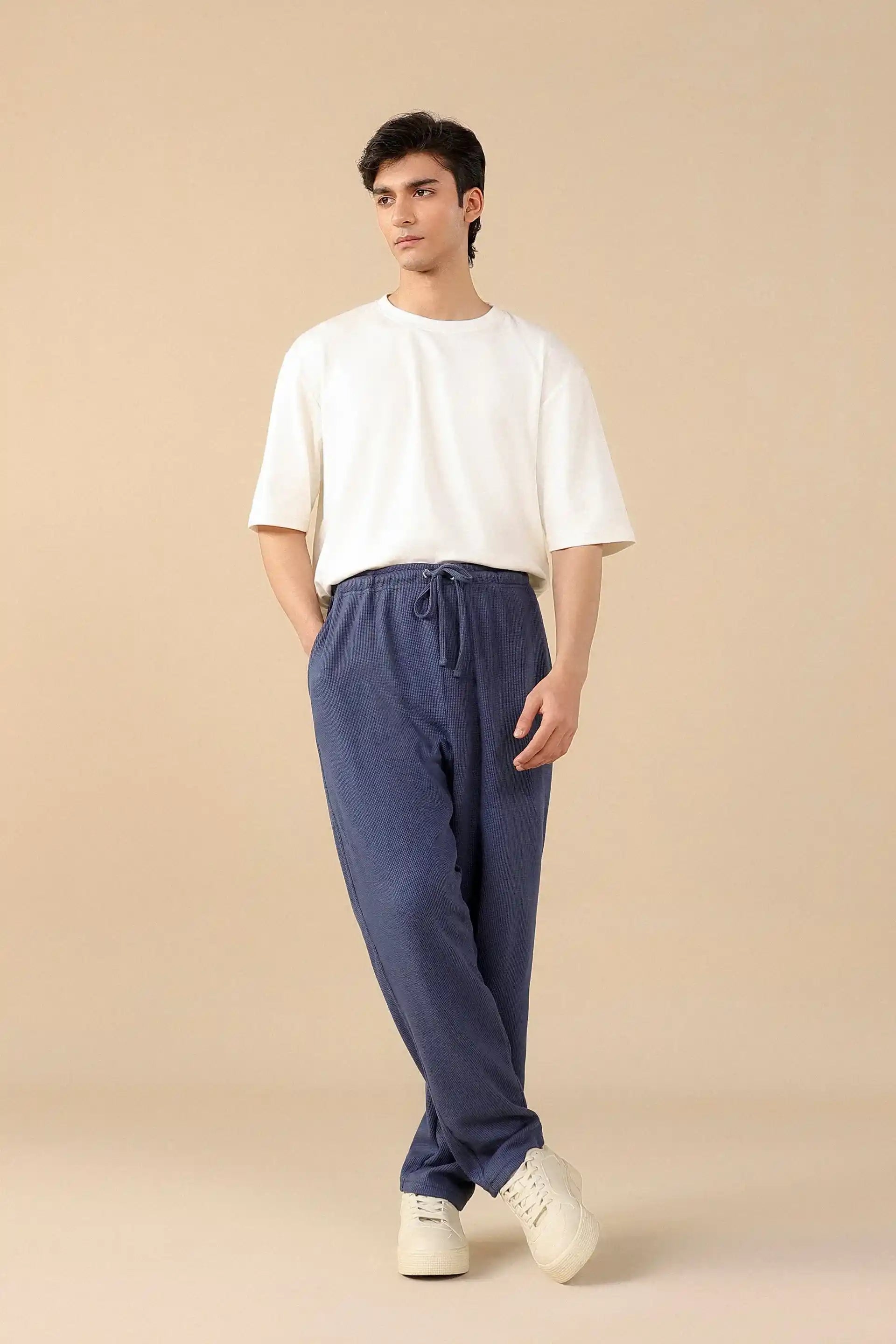 Made for all-day comfort, these Texture Knit Lounge Trousers redefine effortless style. Designed with a soft, breathable waffle knit fabric, they offer a relaxed yet refined silhouette. The side slant pockets add functionality, while the adjustable drawstring ensures a customized fit. Perfect for lounging at home or stepping out in laid-back sophistication.
