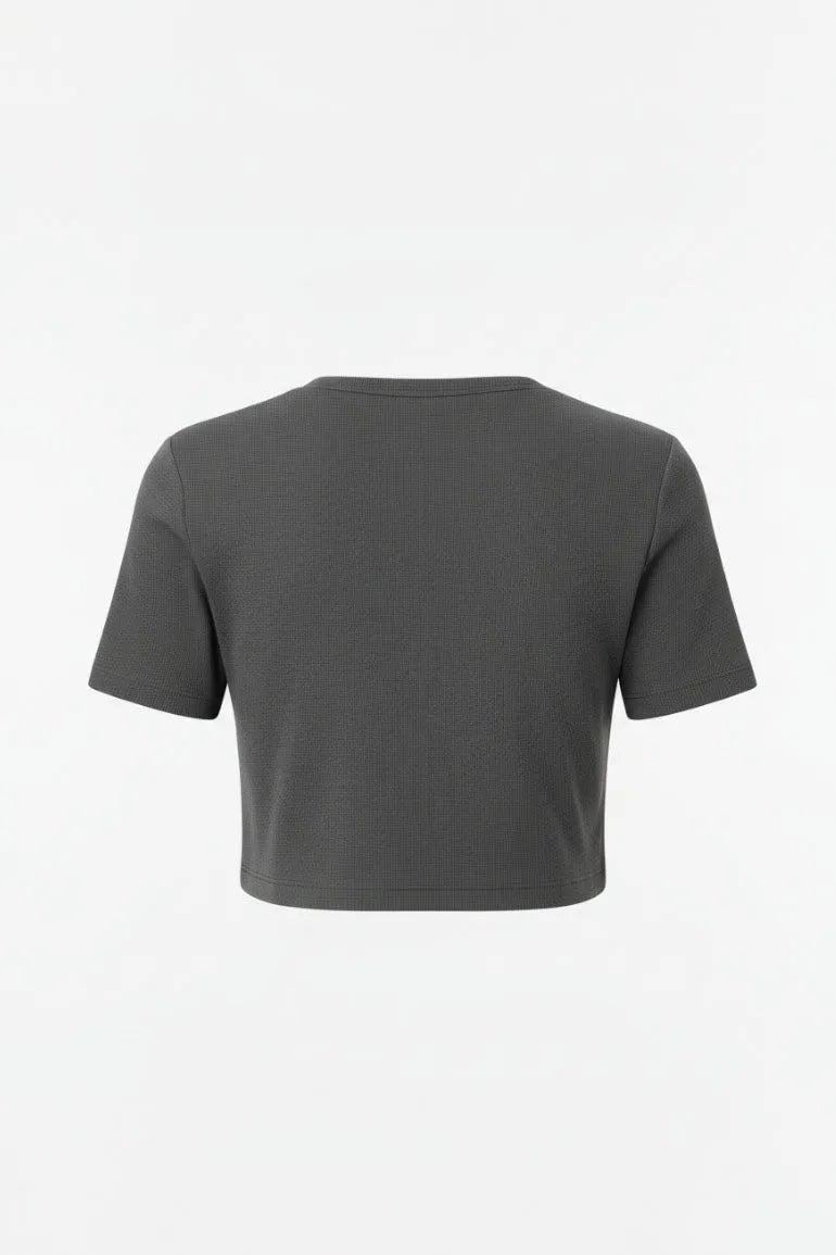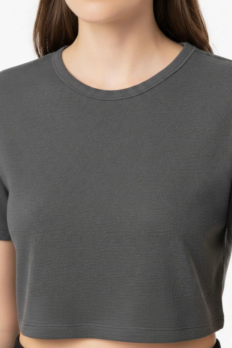 Textured Crop T-Shirt for Women - Charcoal Grey