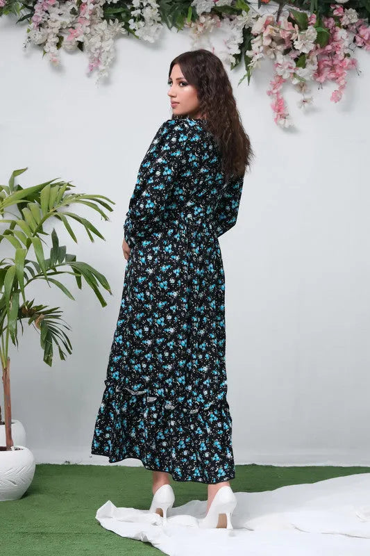 The Duo Black Allover Flover Print Full Sleeve Tunic Dress