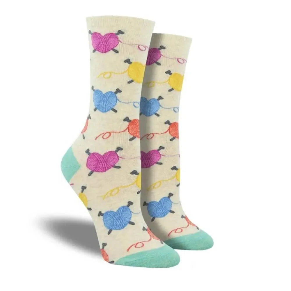 Knit to your heart's delight - while wearing knitting socks, of course! Adorable heart-shaped skeins of yarn can adorn your feet next time you curl up with a great pattern and some colorful yarn.
