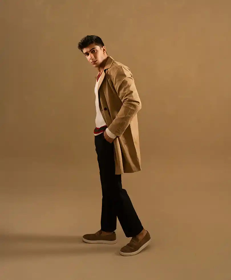 Timeless elegance meets modern craftsmanship with our new trench coat. Designed for a refined yet versatile look, this wardrobe essential features a classic silhouette with thoughtful tailoring to elevate any outfit. Perfect for layering through seasons, it offers a polished finish whether styled casually or formally.