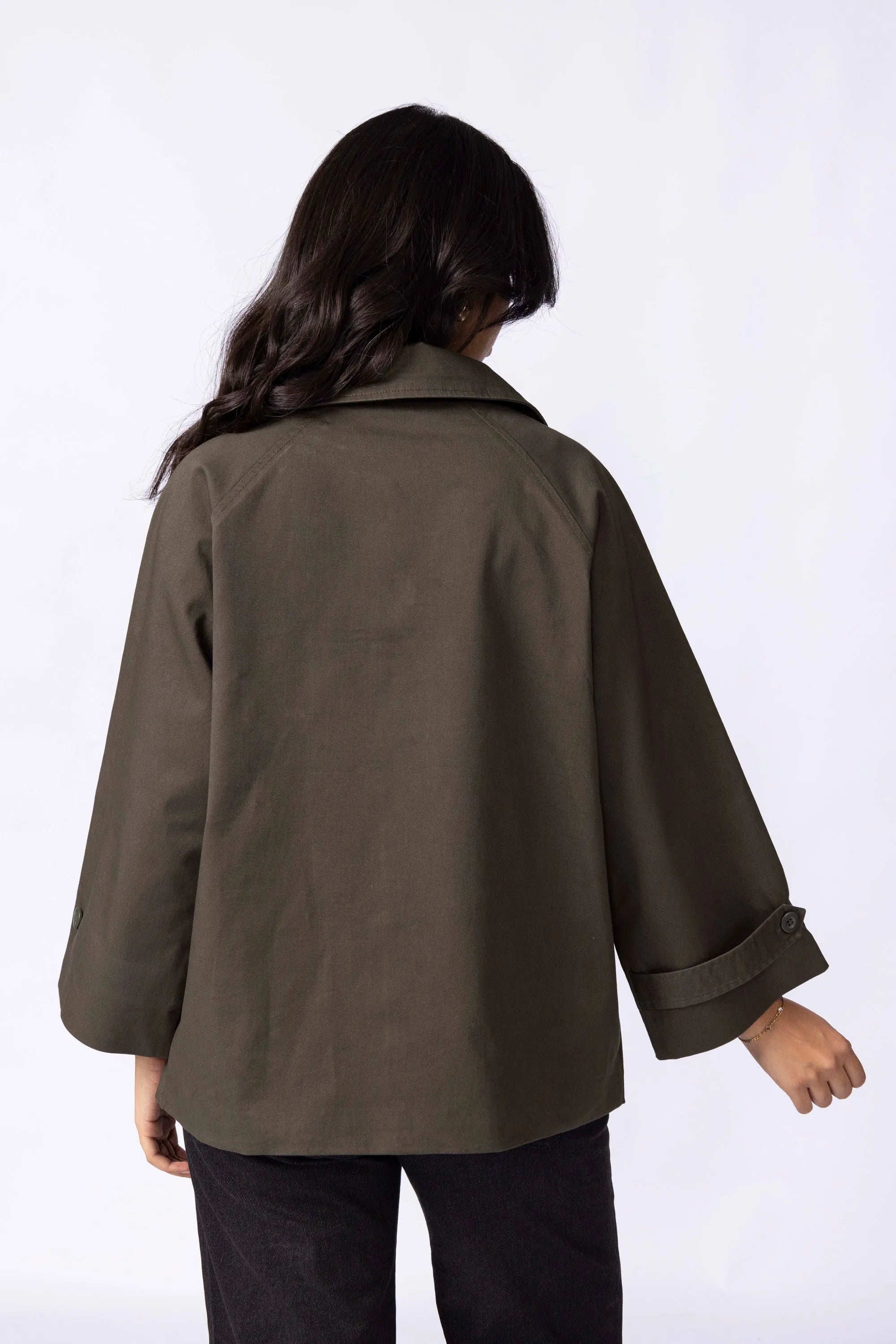 • Streamlined Silhouette: Tailored trench-inspired shape with soft definition.