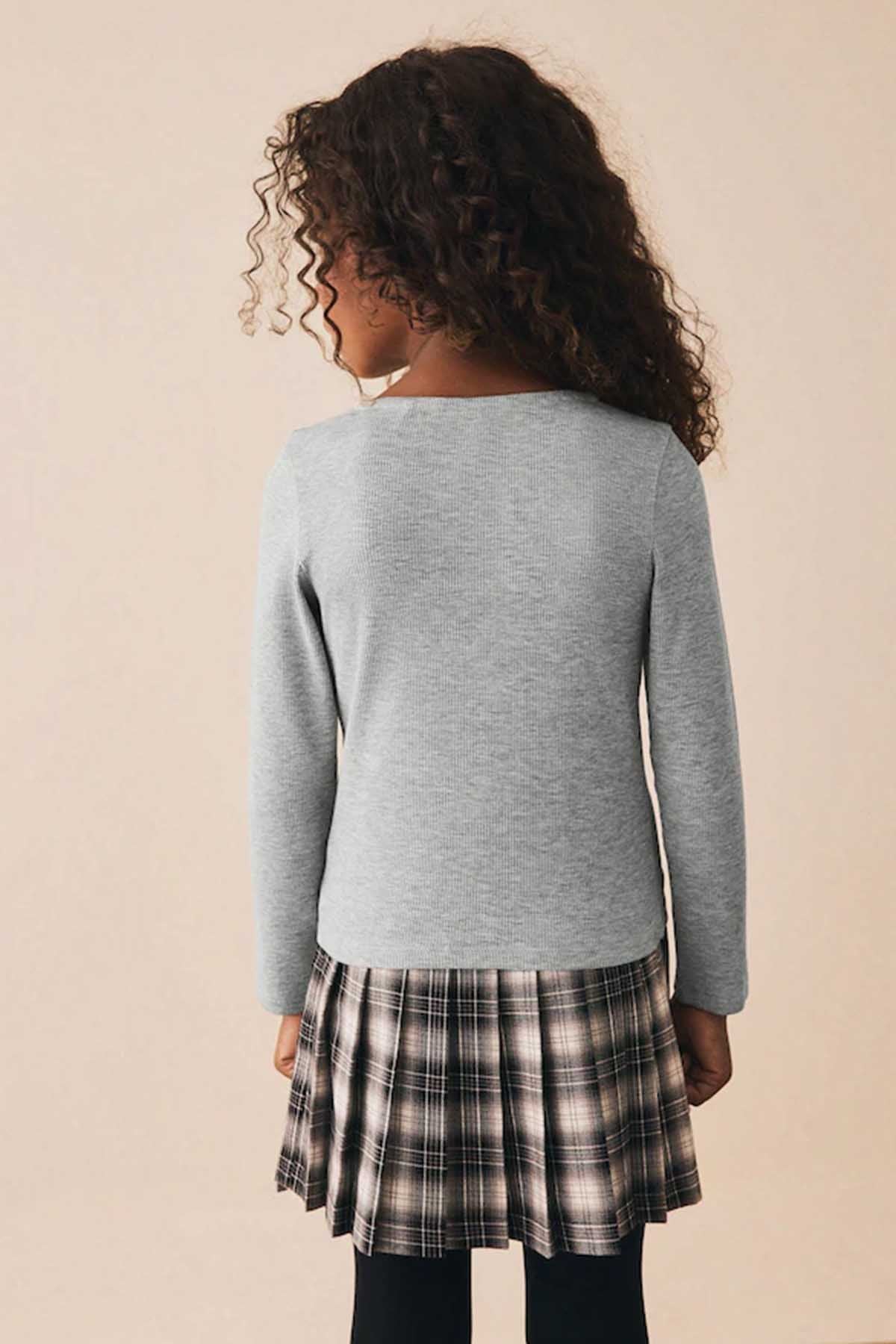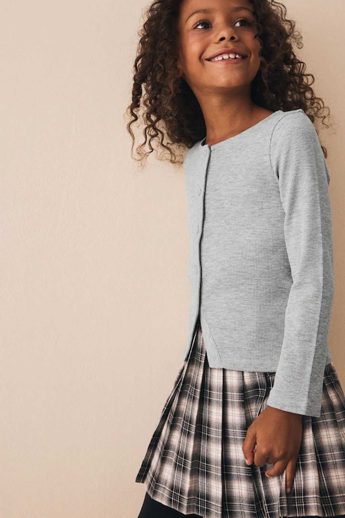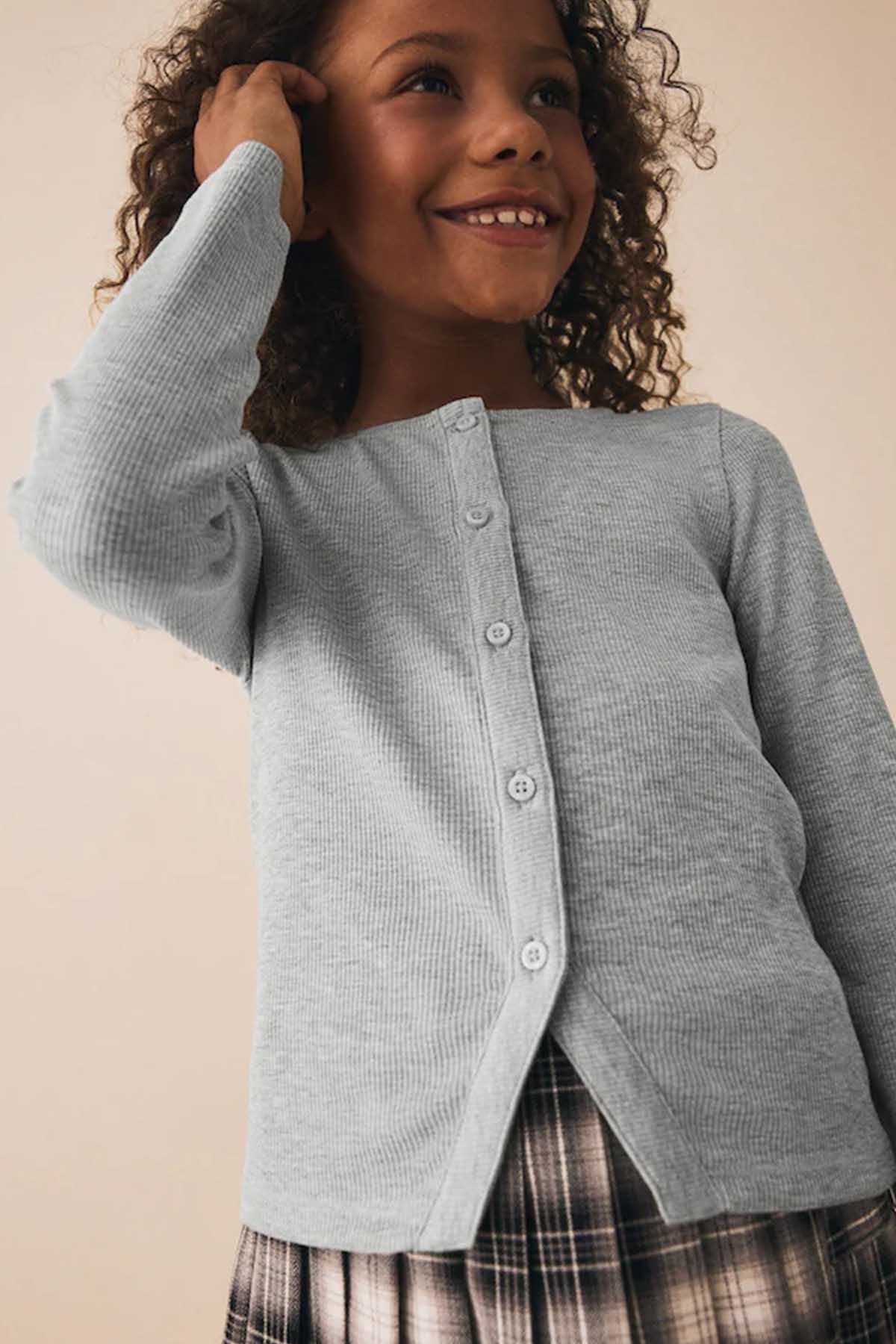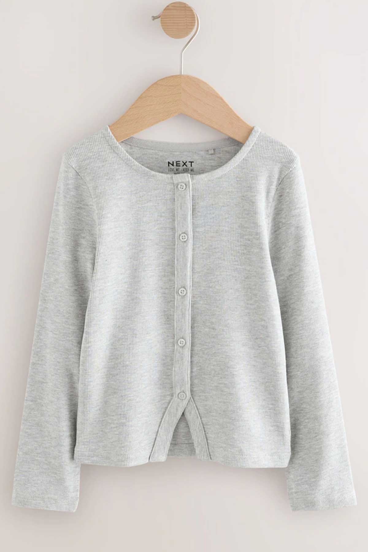 Grey Long Sleeve Ribbed Cardigan