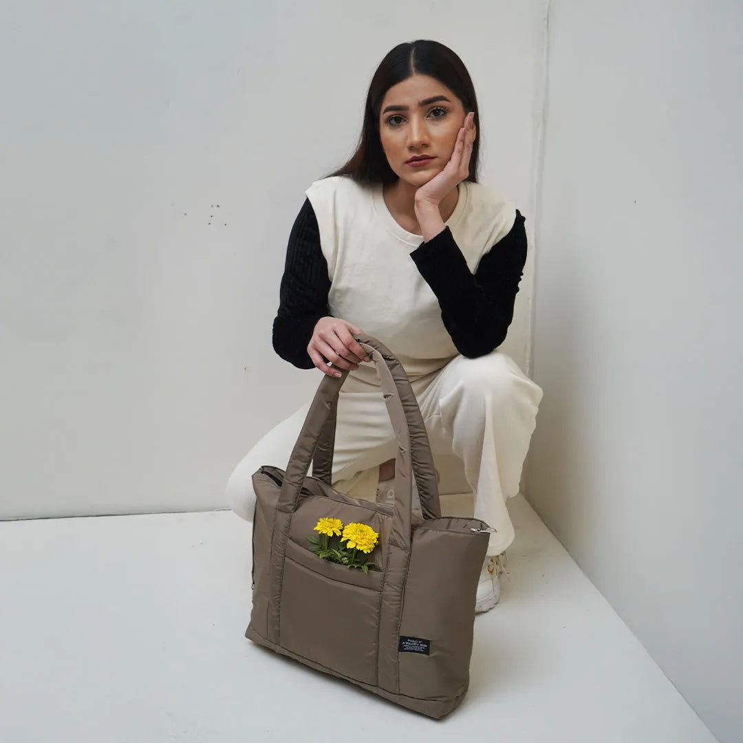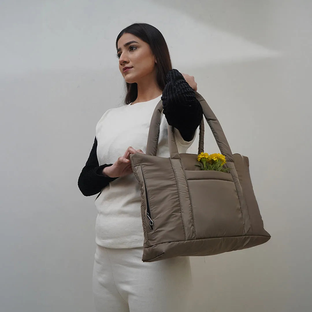 walnut Puffy Tote Bag for Women