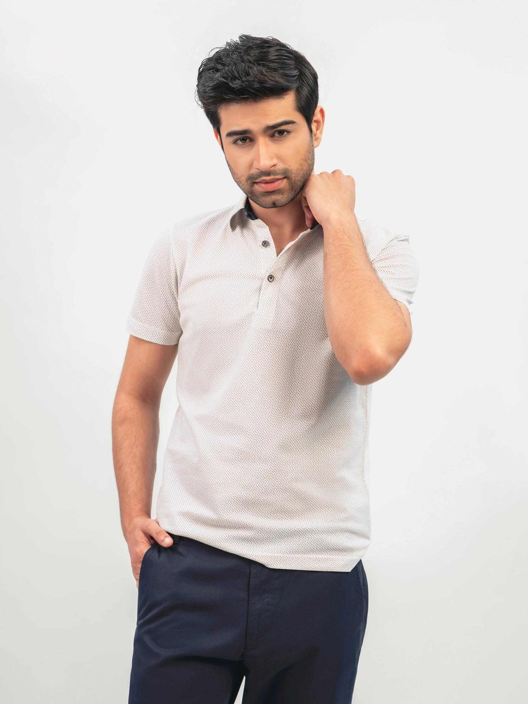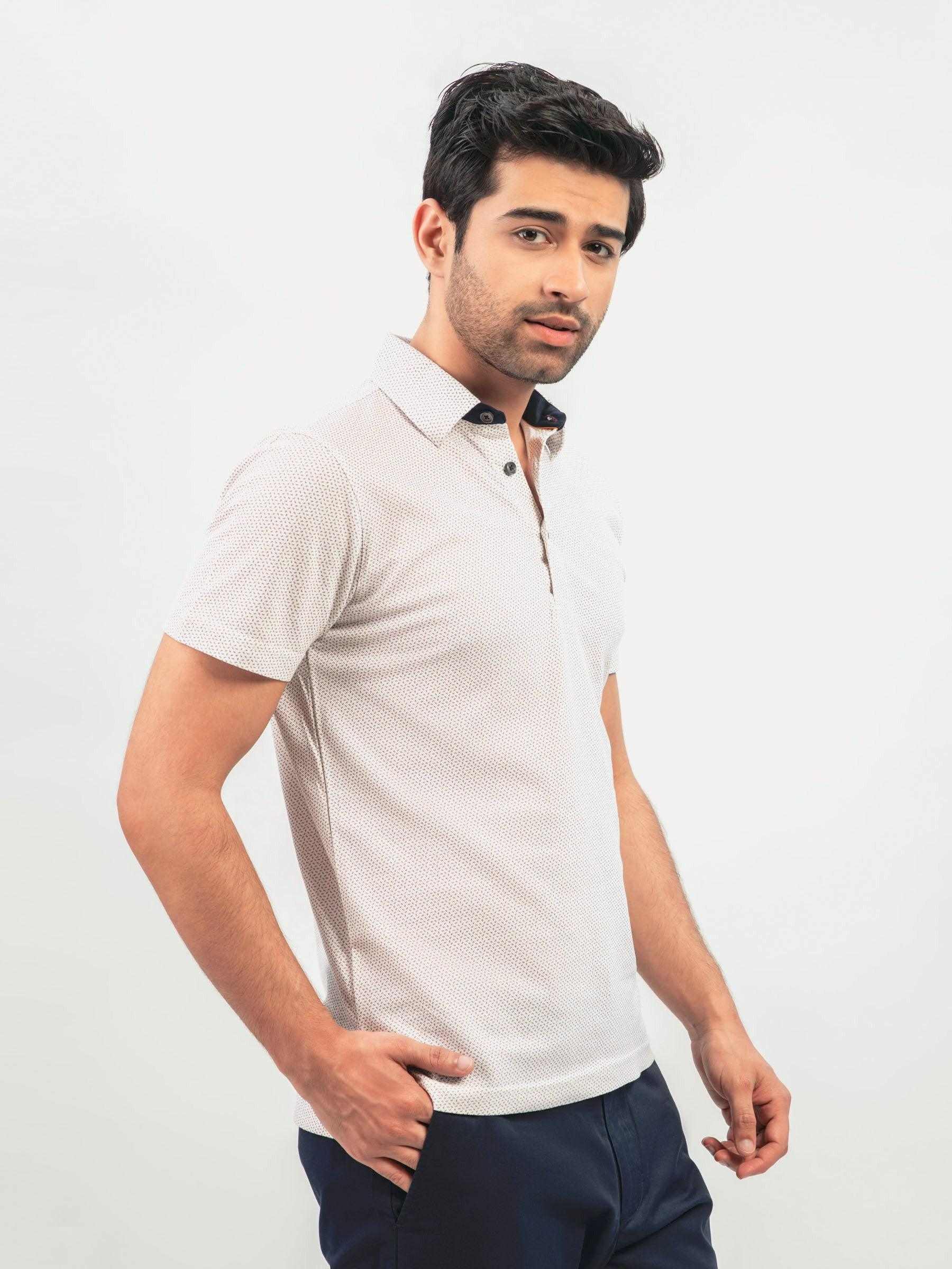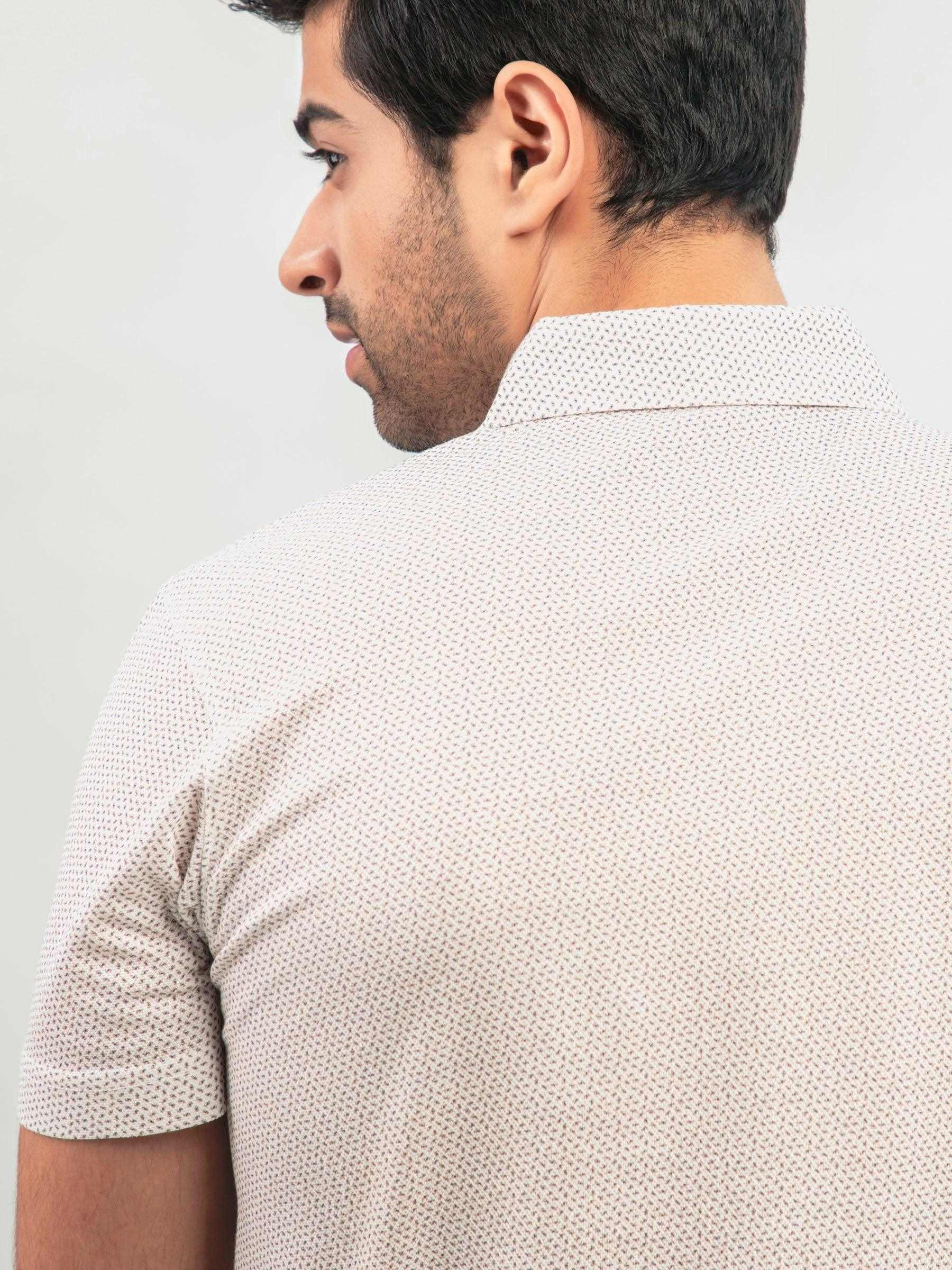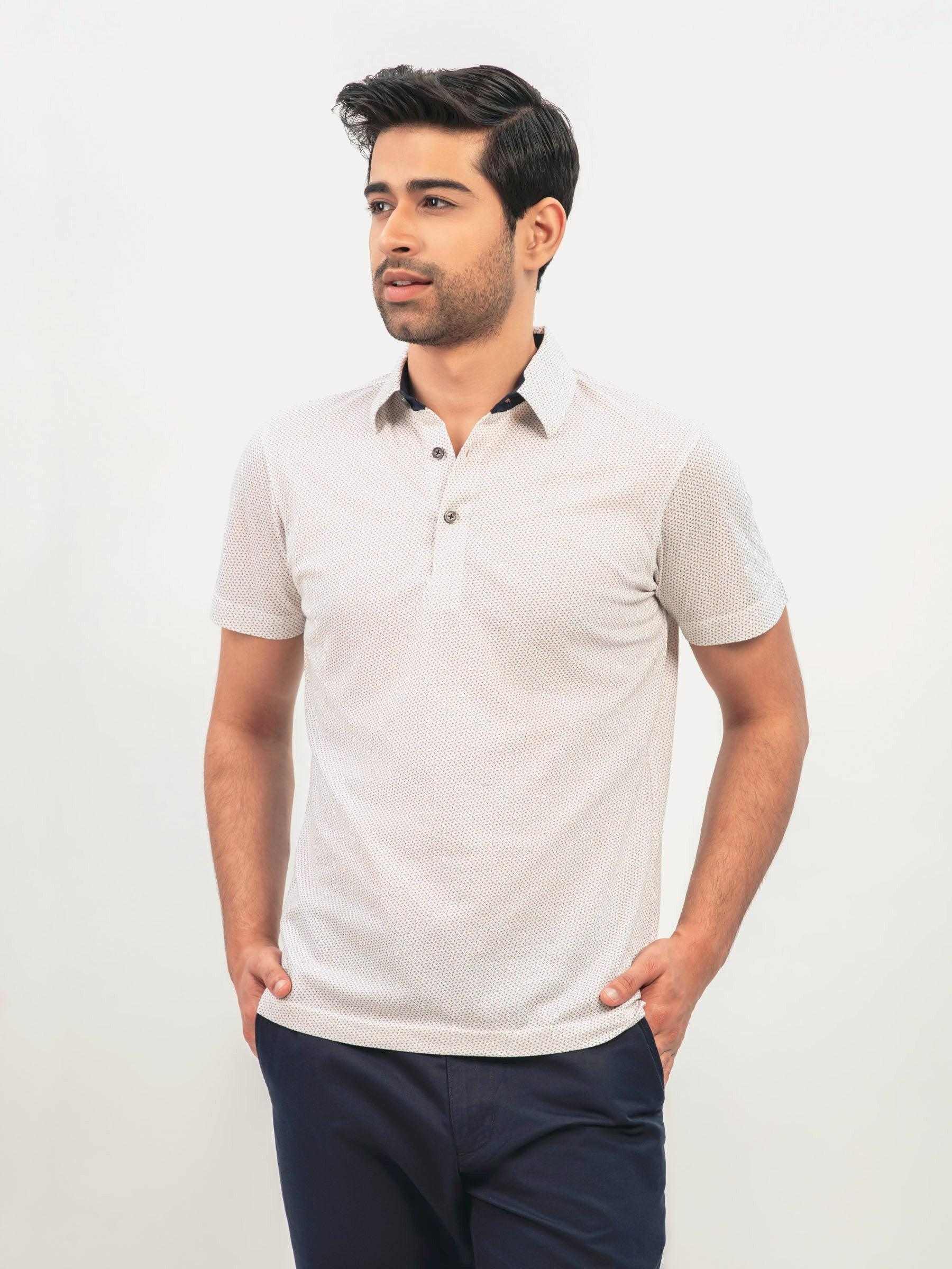 White & Beige Printed Polo