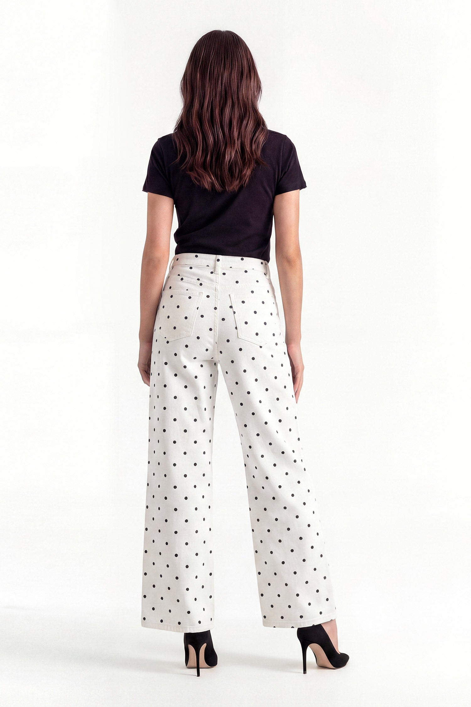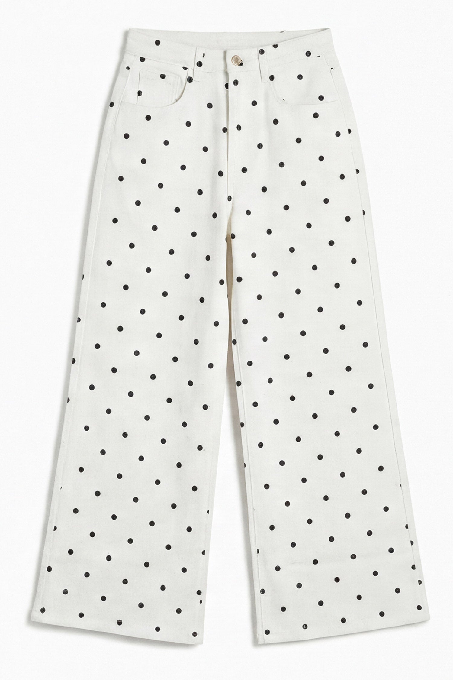 A statement wide-leg denim featuring an all-over polka dot print on a clean base. Designed with a relaxed silhouette and bold visual appeal, this piece blends playful detail with effortless streetwear style. Comfortable, eye-catching, and easy to stand out in.
