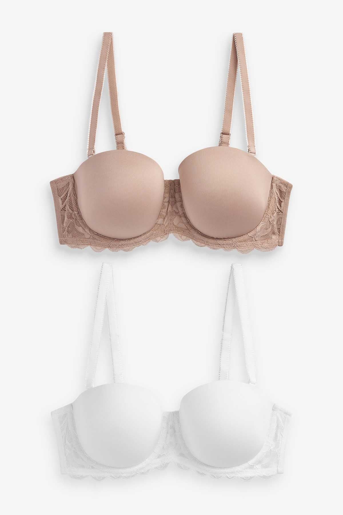 White/Praline Nude A-E Light Pad Strapless Multiway Bras 2 Pack
