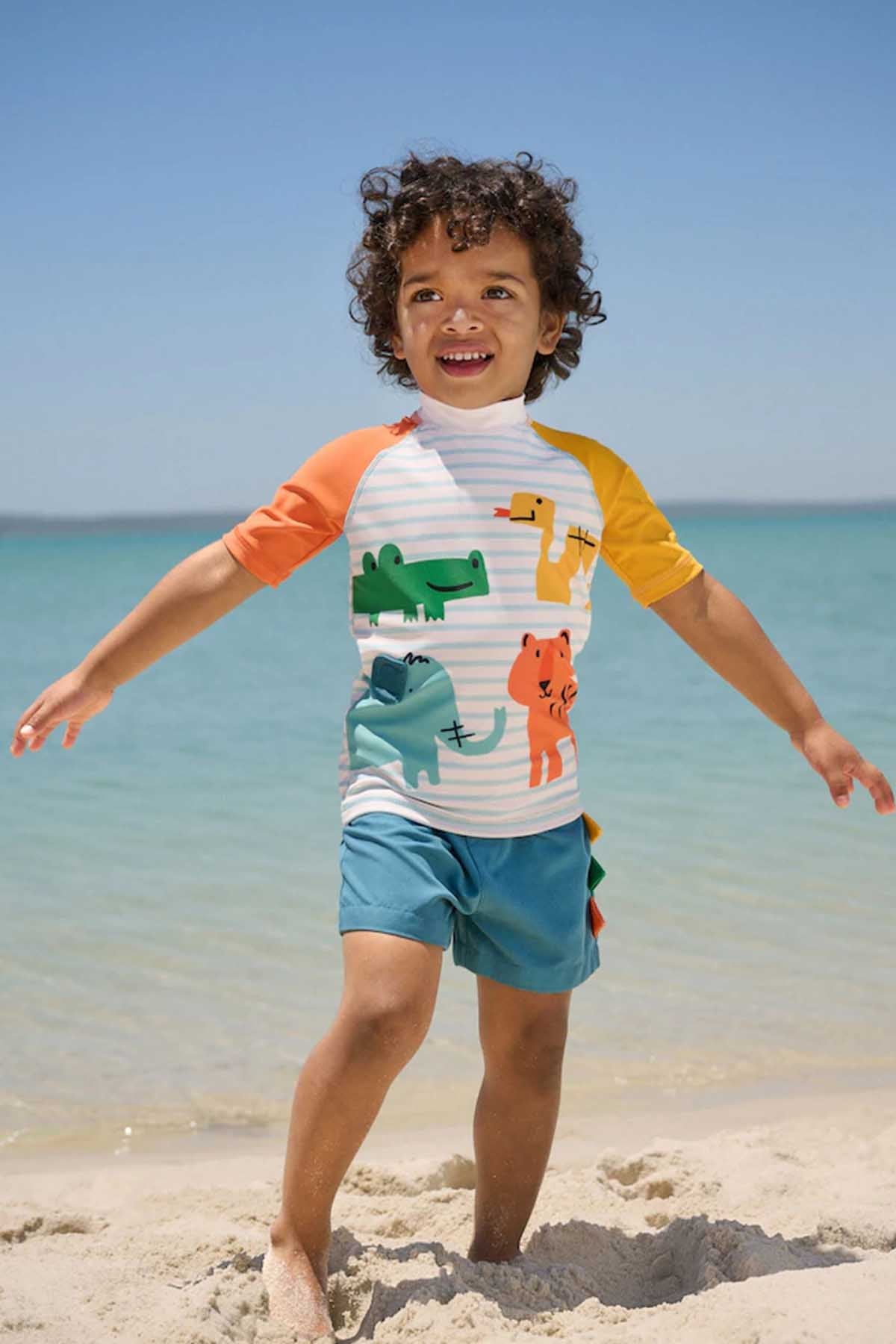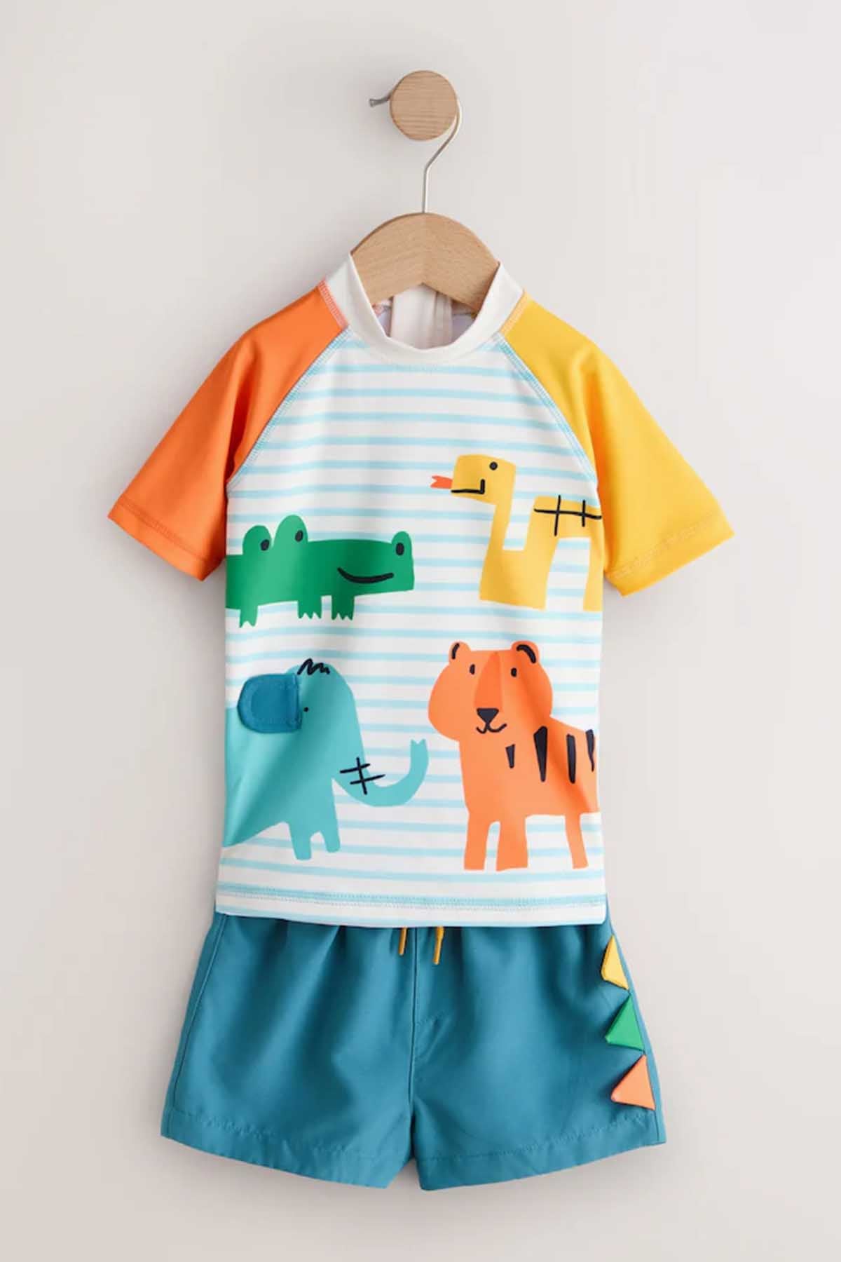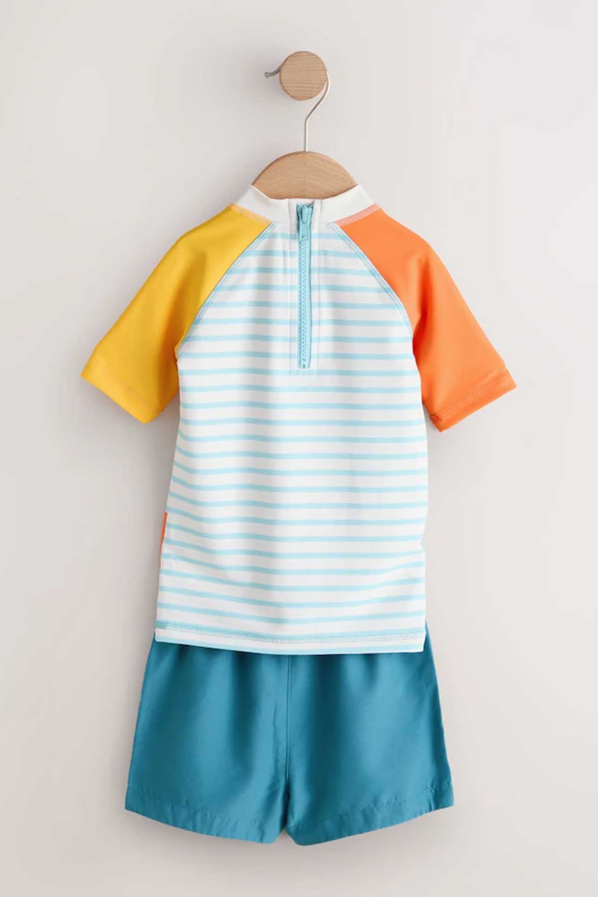White/Red/Yellow Short Sleeve Sunsafe Rash Vest and Swim Shorts Set 3mths-7yrs