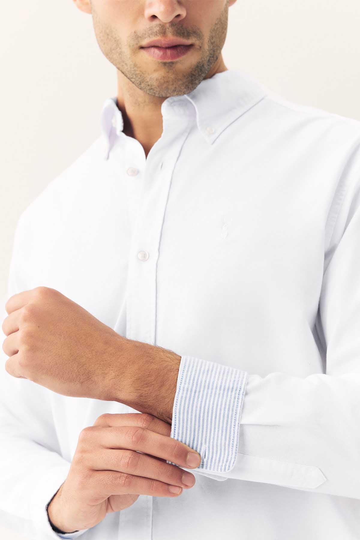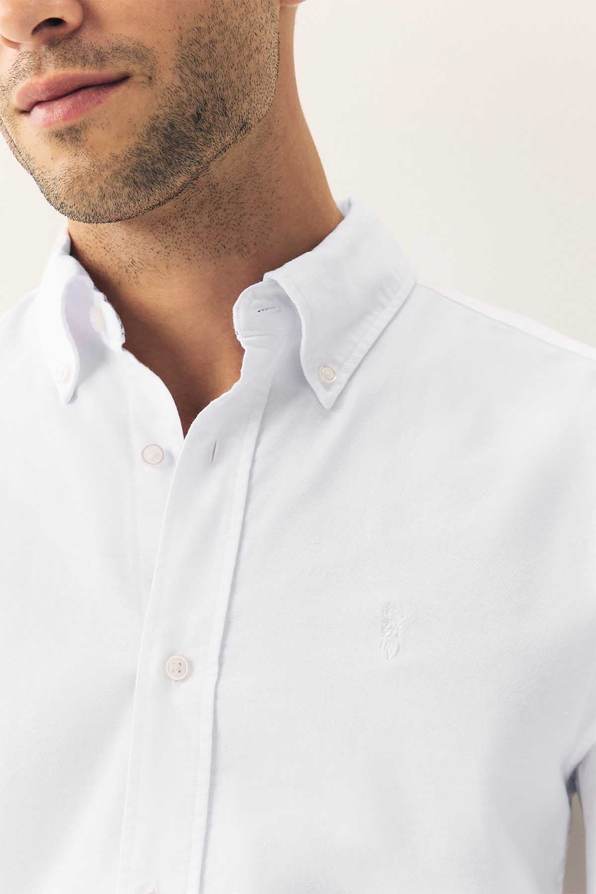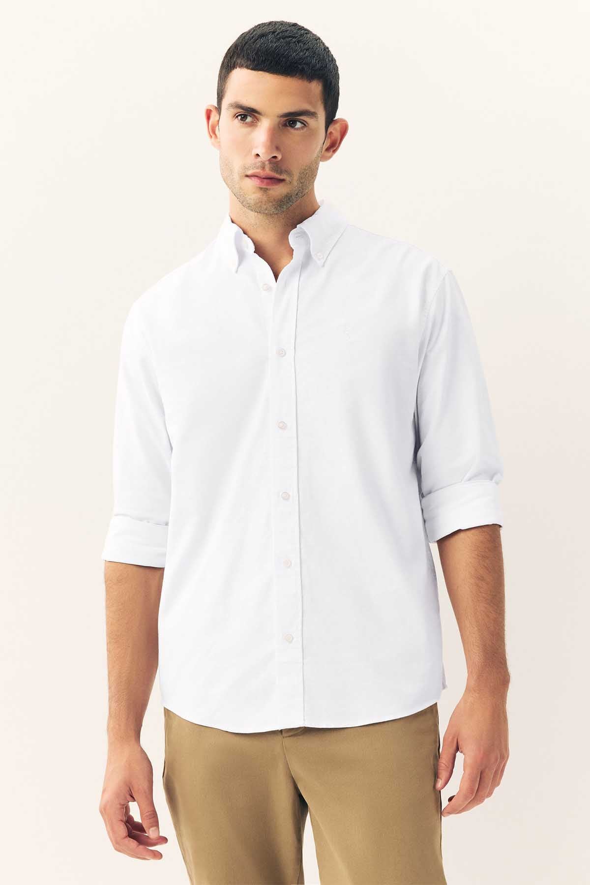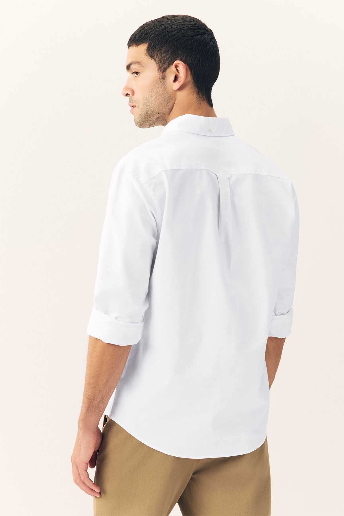 White Regular Fit Long Sleeve Oxford Shirt