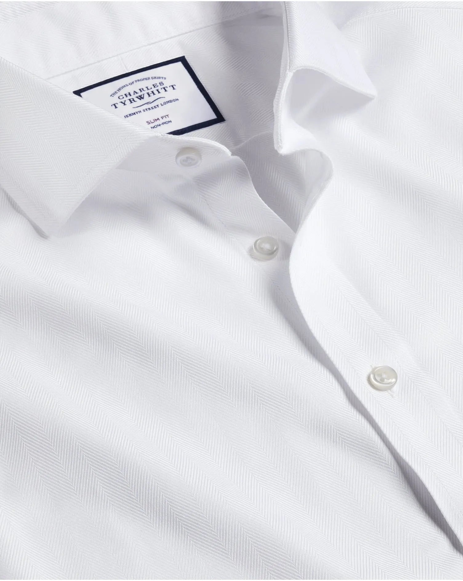 White Slim Fit Cutaway Non-Iron Herringbone Shirt