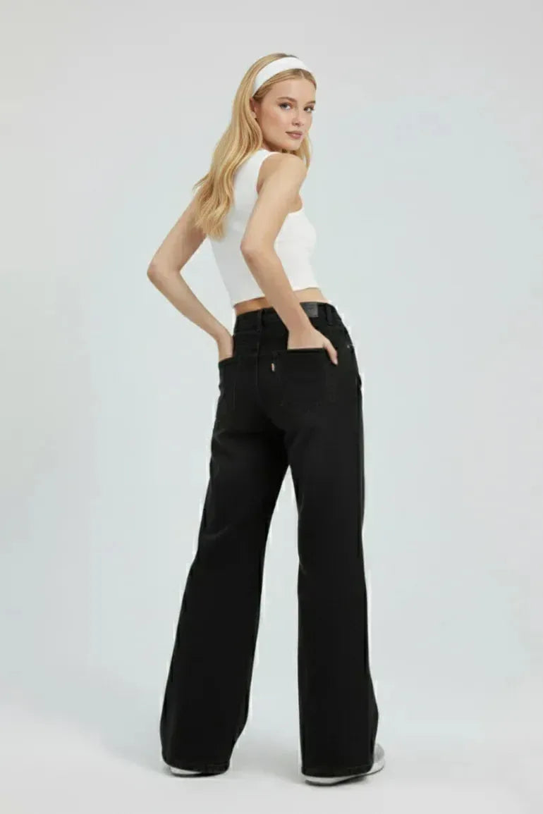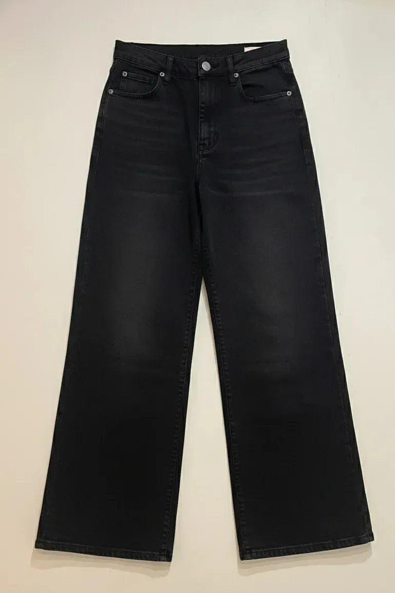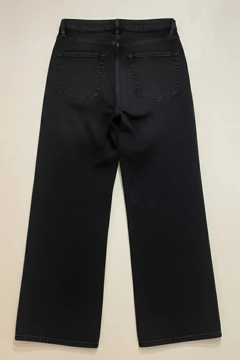Elevate your casual style with these Wide-Leg Jeans For Women. Designed for a sleek yet relaxed silhouette, these jeans feature a soft washed-black finish that adds depth and versatility to any outfit. The high-rise fit flatters the waist, while the wide-leg cut offers comfort and a modern edge. Crafted from premium stretch denim, these jeans move with you for all-day ease and style.
