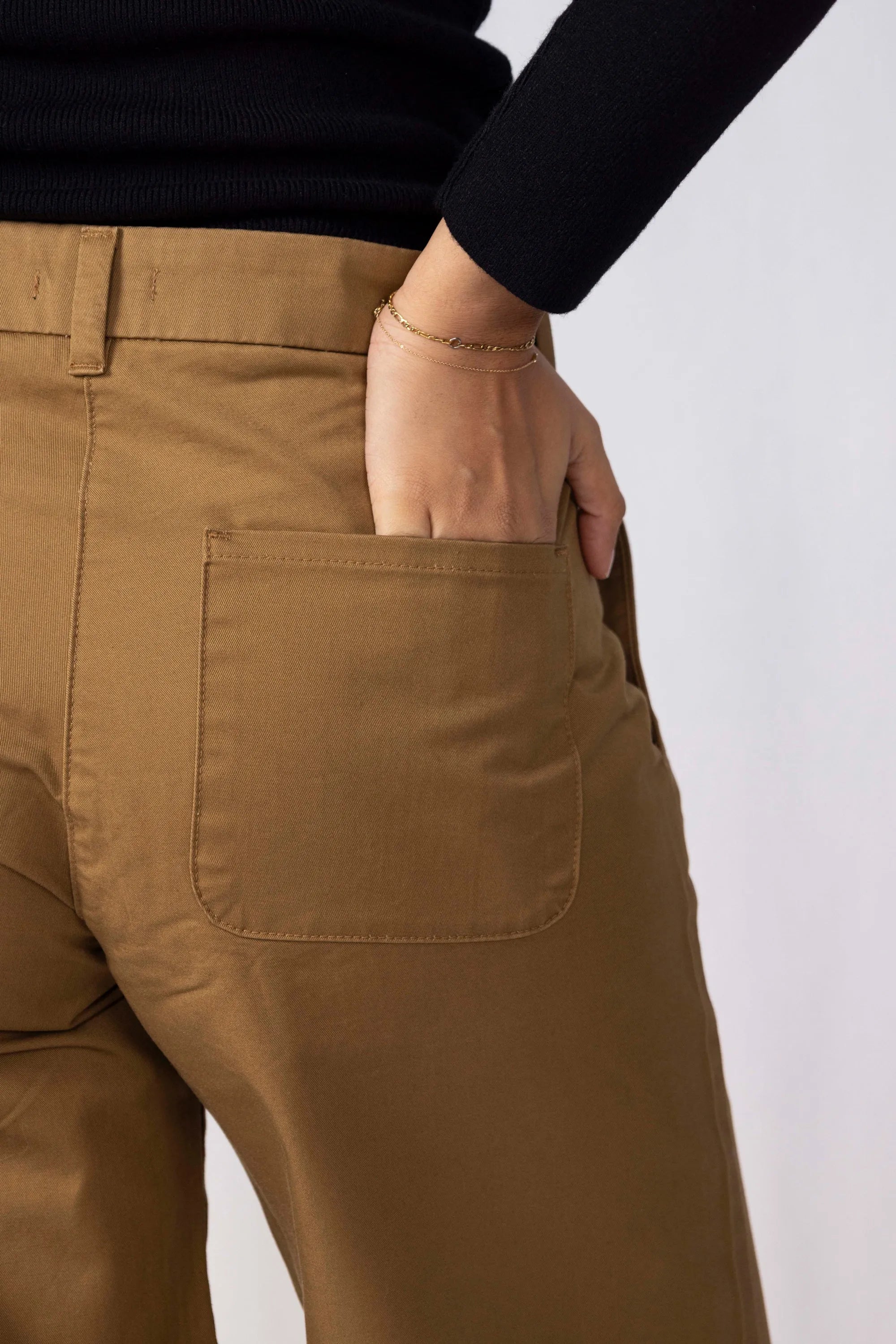 A straight-leg chino with clean lines and classic detailing. Slant front pockets and welt back pockets offer timeless utility, while the full-length hem lets you adjust the look — roll, crop, or tailor. Minimal topstitching keeps the finish elevated and refined.