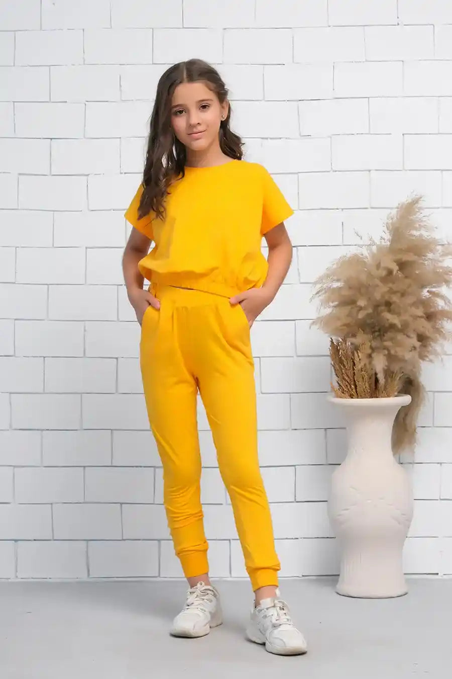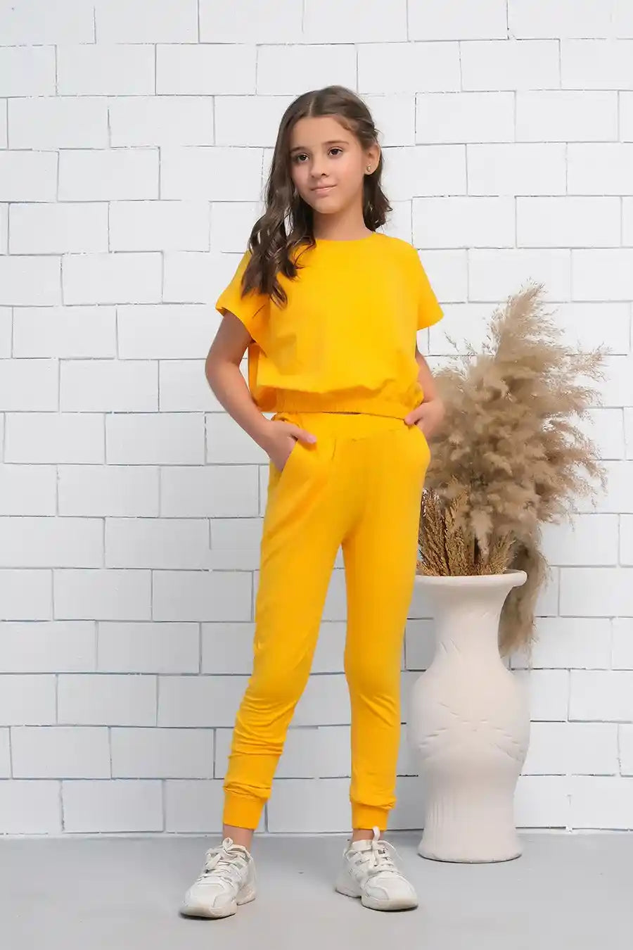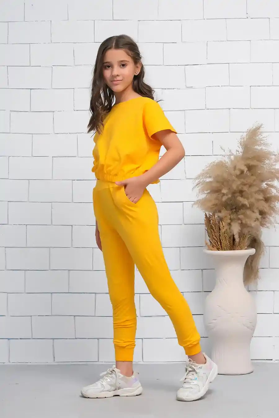 Yellow 2Pcs Cord Set with Short Sleeves Shirt and Trouser