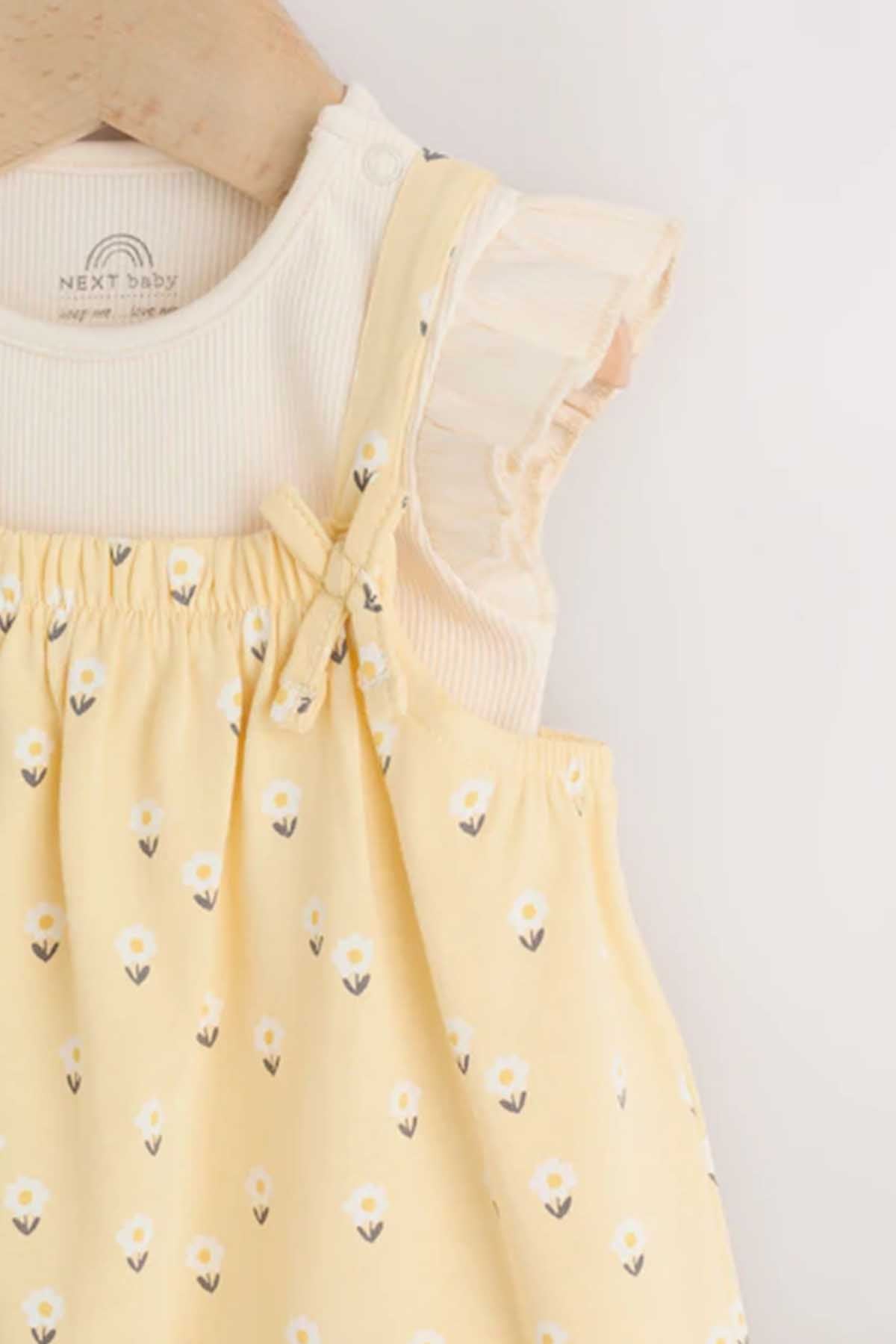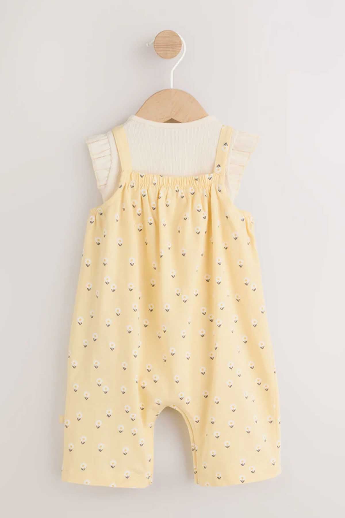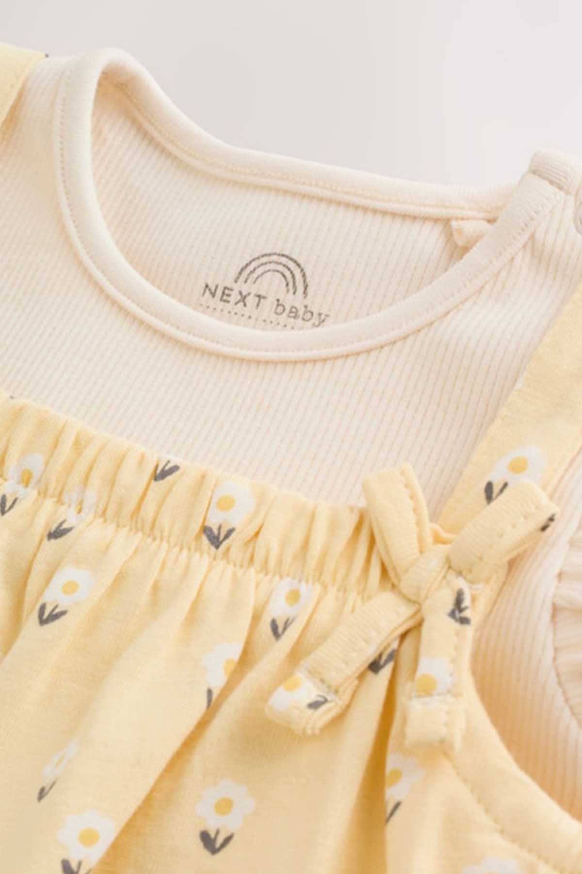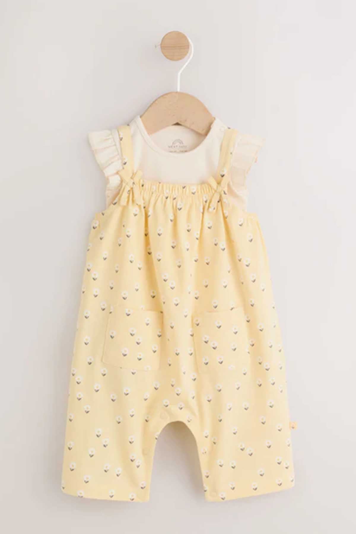Yellow Ditsy Baby Jersey Dungarees and Bodysuits Set 2 Piece 0mths-3yrs