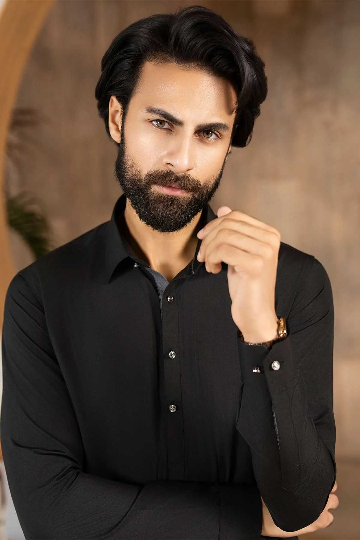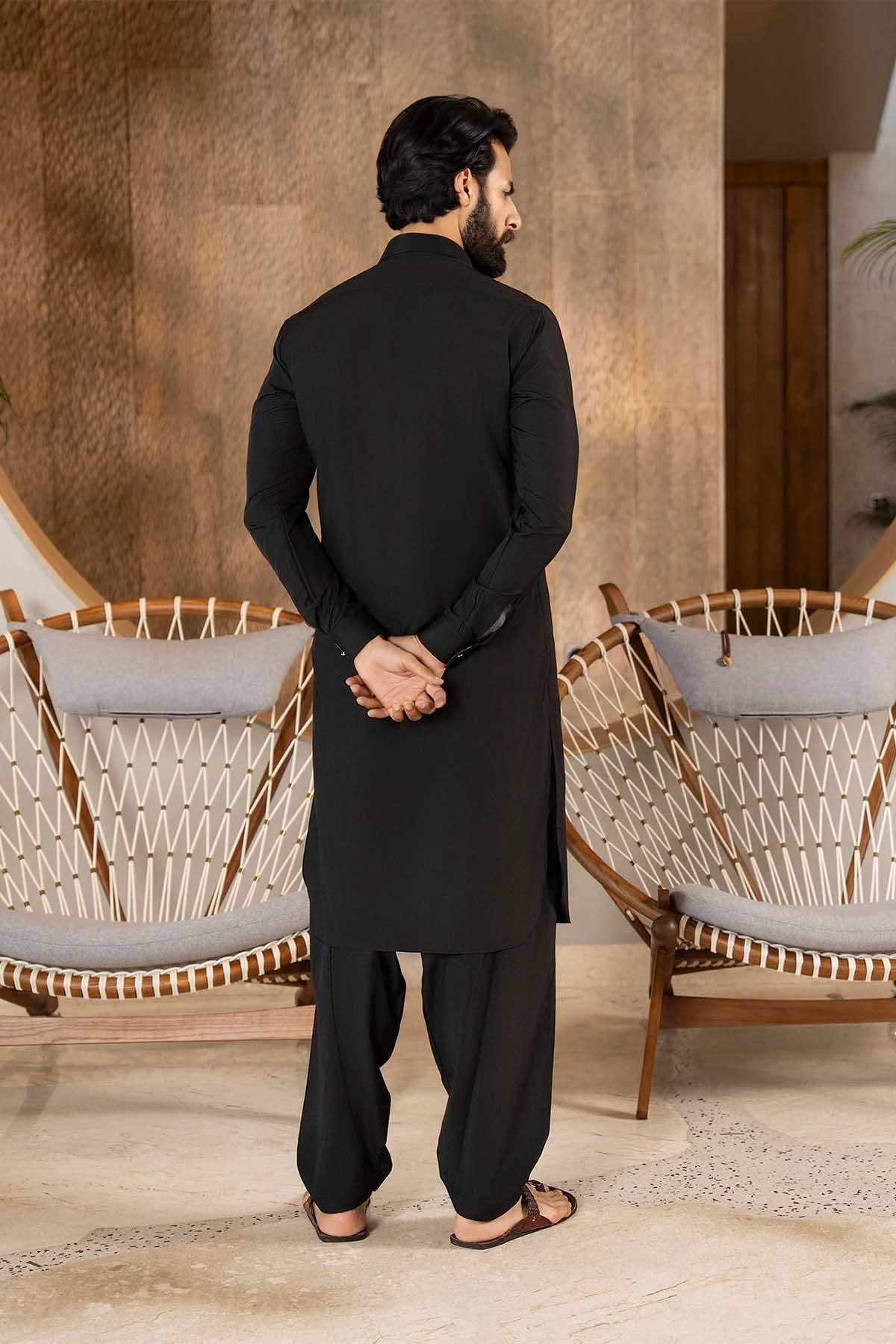 Daily/Basic Wear Shalwar Kameez set in Charcoal Black offers a sleek straight-cut top and loose-fit bottom, perfect for summer wear. Crafted with premium wash & wear fabric, this 2-piece ensemble exudes sophistication and comfort. The blended exclusive design features a modern take on traditional Eastern attire.