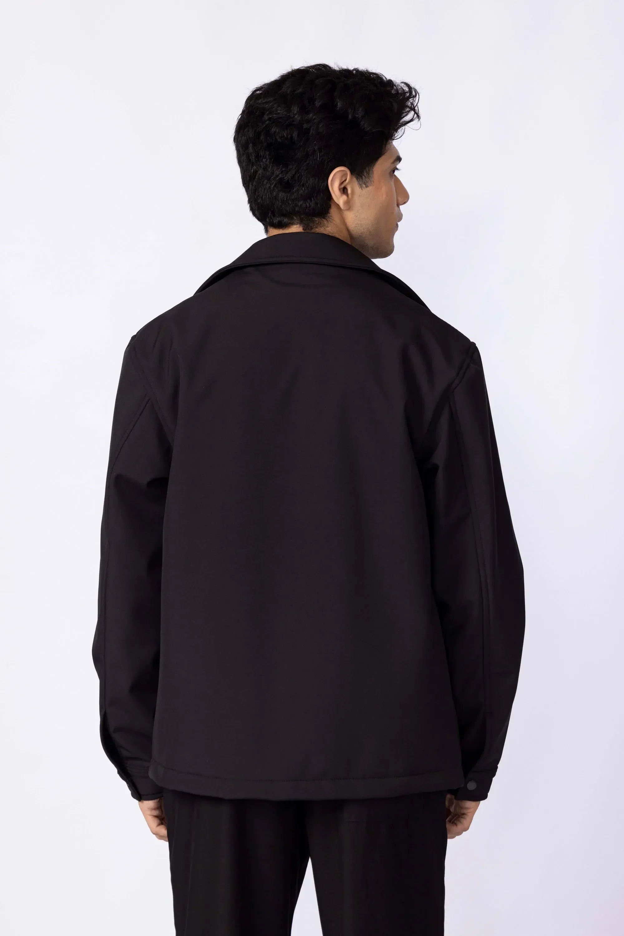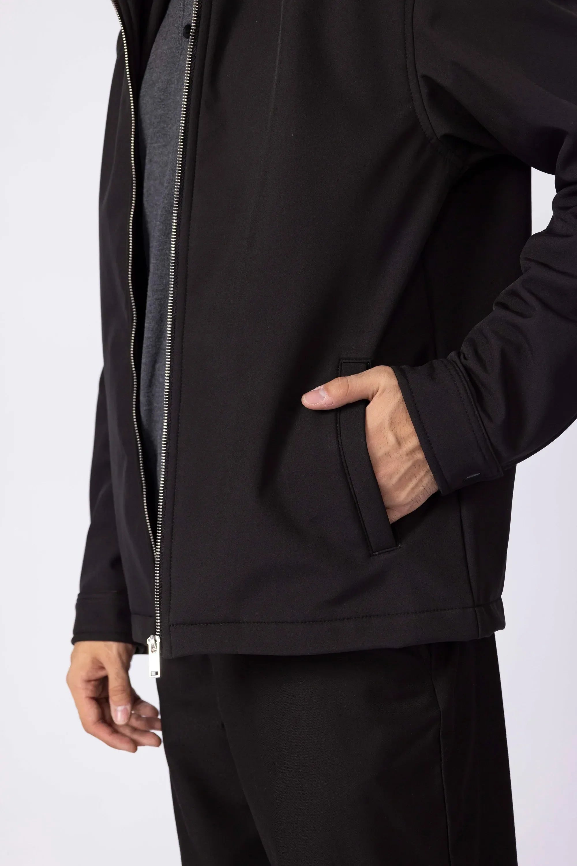 A timeless layer reimagined with modern ease. Cut from a smooth, midweight fabric, it features a clean zip front, structured collar, and subtle elastic trims for a refined yet relaxed silhouette. Equally at home over a tee or a button-down.